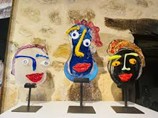 Sculpte d’abord des visages ou des nez en céramique. Ses sources d’inspirations sont parfois des artistes de cinéma ou des personnages mythologiques. Elle associe les formes, les couleurs et elle les retranscrit avec précisions.