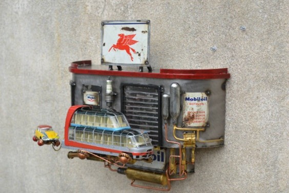 Sculpteur sur métal, il détourne les objets du quotidien et il véhicule son univers imaginaire dans des objets uniques qu’il construit. Il aime réaliser des pièces personnalisées.